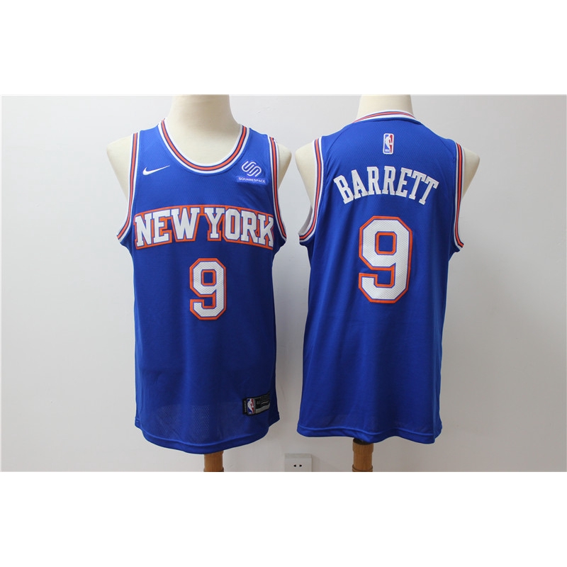 19 20 Basketball Jersey Blue White Retro Fans Version With Sponsor Logo 9 Rj Barrett Jersi New York Knicks Jerseys Shopee Malaysia Jersey Basketball For Sale