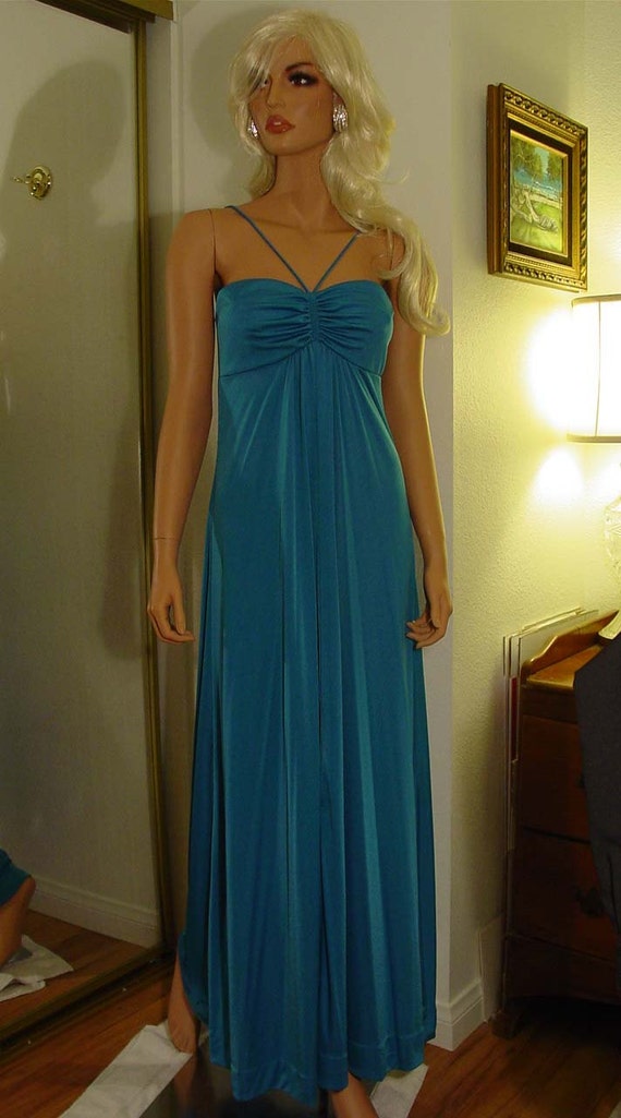 1970s Deep Rich Aqua Blue Jersey Halter Maxi Dress Excellent Etsy Jersey Auri Sport