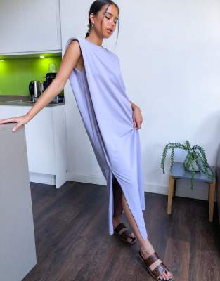 Weekday Kai Organic Cotton Jersey Dress With Shoulder Pads In Dusty Purple Asos Jersey Red Maxi Dress