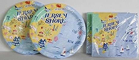 Amazon Com Jersey Shore Paper Plates Napkins Bundle Kitchen Dining Jersey White Basketball Design