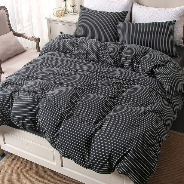 Pure Era Duvet Cover Set Ultra Soft Heather Jersey Knit Cotton Home Bedding Narrow Pinstripes Black White Queen Size 1 Comforter Cover And 2 Pillow Shams Walmart Com Walmart Com Jersey Island Work Permit