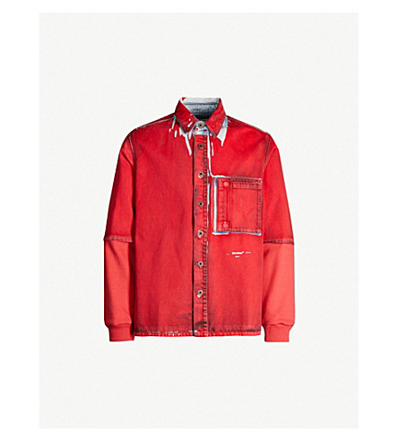 Off White Jersey Sleeve Denim Shirt Jacket In Red Black Modesens Green Camouflage Basketball Jersey