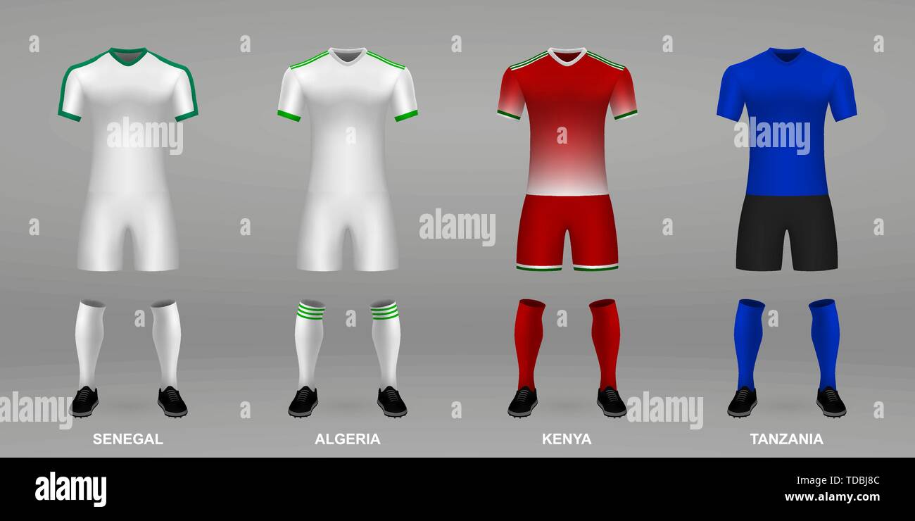 Set Of Realistic Football Kits Senegal Algeria Kenya Tanzania Shirt Template For Soccer Jersey Vector Illustration Stock Vector Image Art Alamy Jersey State Lottery